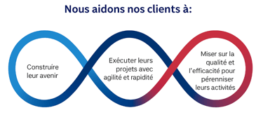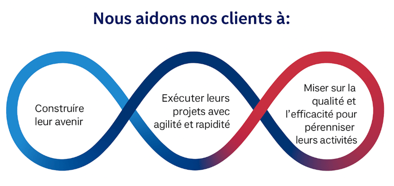 Travaillant de concert avec votre organisation, nous combinons nos capacités complètes à votre expertise et à vos actifs pour accélérer votre virage numérique. Notre modèle de transformation d’entreprise met l’accent sur le changement continu, l’optimisation des opérations et la production de résultats tangibles pour vous aider à bâtir votre avenir, à exécuter vos plans avec agilité et rapidité, et à exercer vos activités en misant sur la qualité et l’efficacité. Nous pouvons joindre nos forces à celles de votre équipe à n’importe quelle étape de votre parcours.